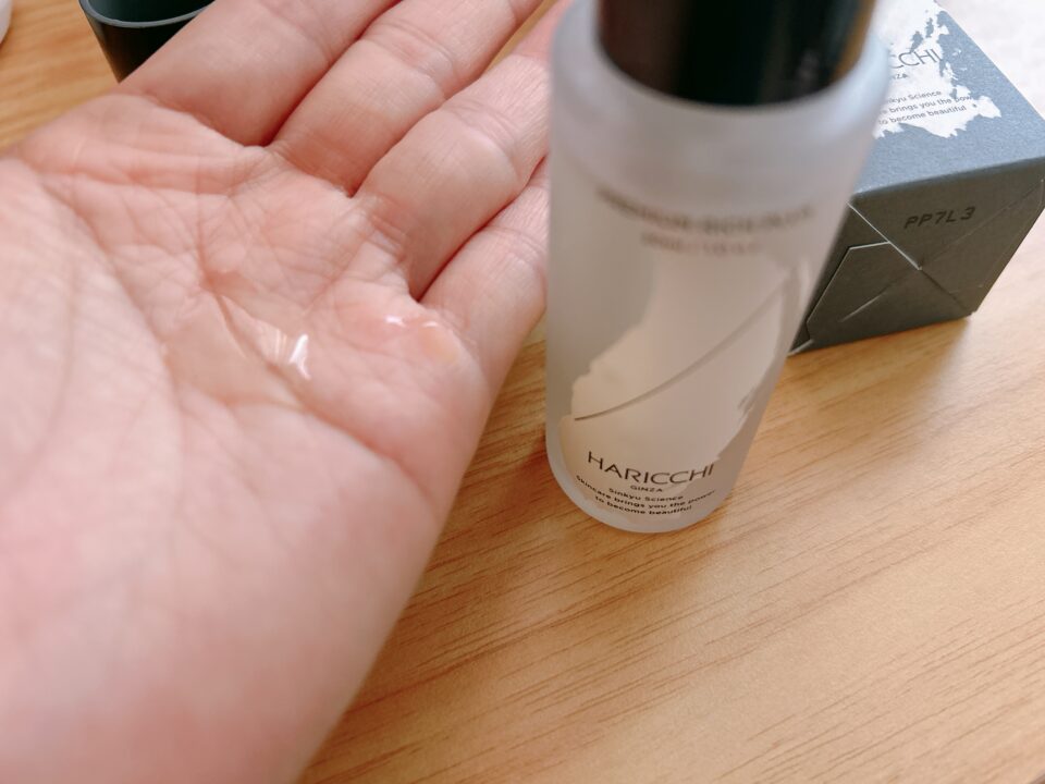 ハリッチ美容液は、とろみのあるテクスチャーでありながら、肌なじみが非常によく、すっと浸透していく感覚があります。